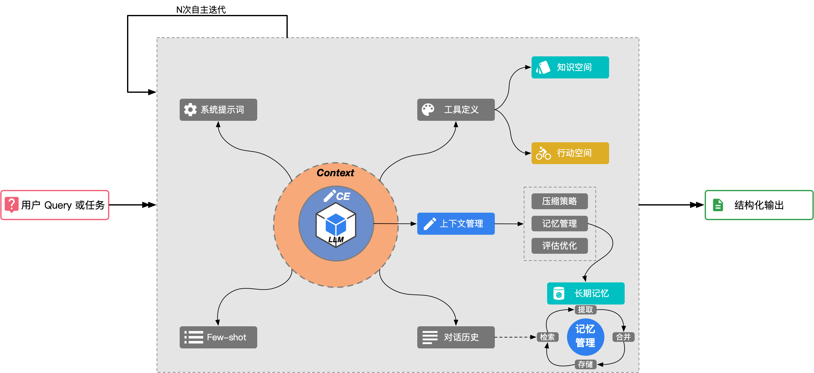 但是,对于 长程任务 而言,仅仅优化话术还是不够的,此时必须为大模型提供更多的额外信息(例如:系统指令、工具、模型上下文协议(MCP)、外部数据、消息历史等)才能保证大模型产出我们希望的结果。