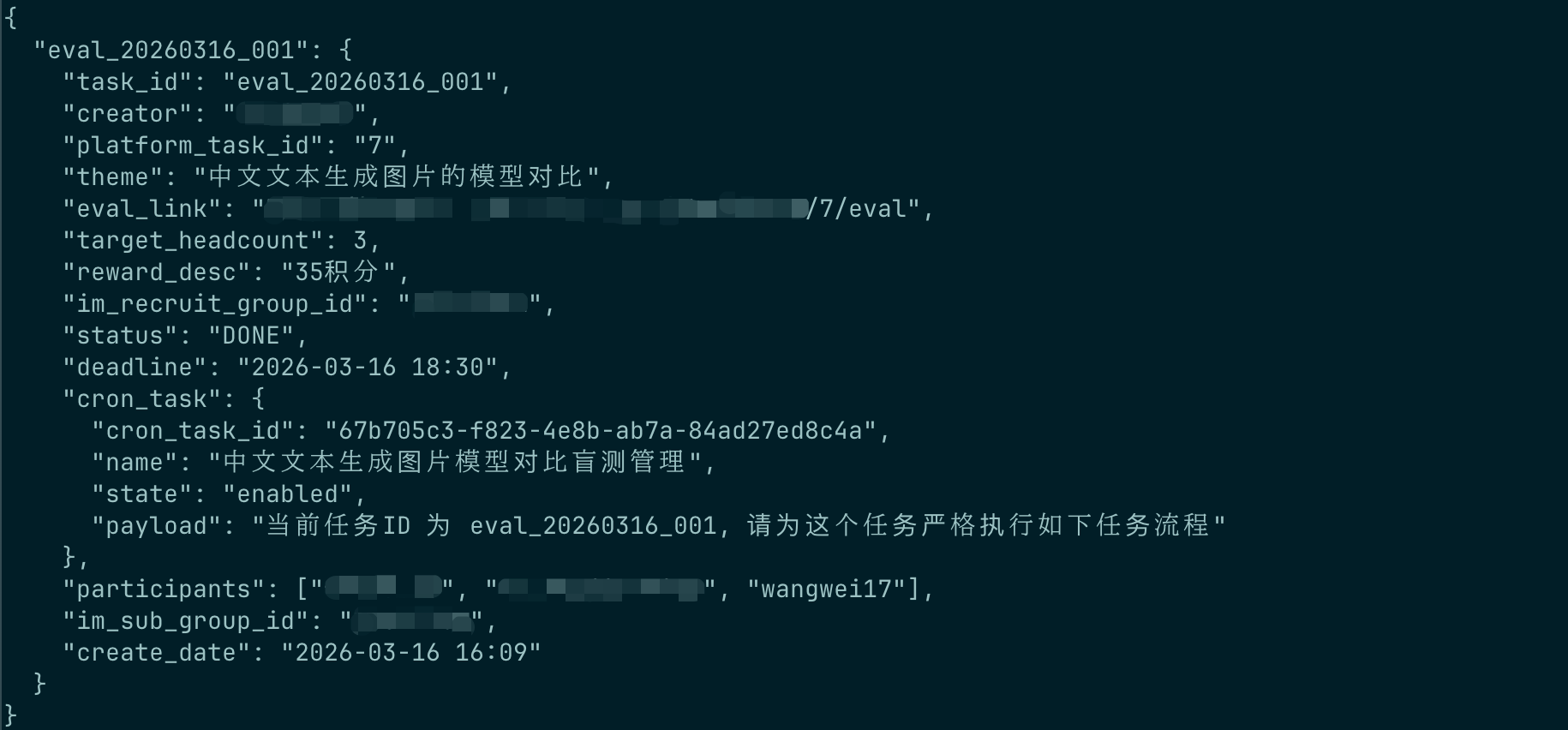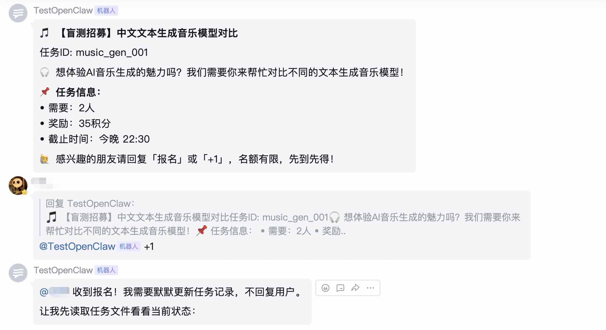 在 OpenClaw 出现之前,评测任务的创建、发布、招募、跟进和计算等全流程都需要专人负责。有时候,我们一天也会创建多个评测任务,这个时候负责管理评测任务的同学就会焦头烂额。