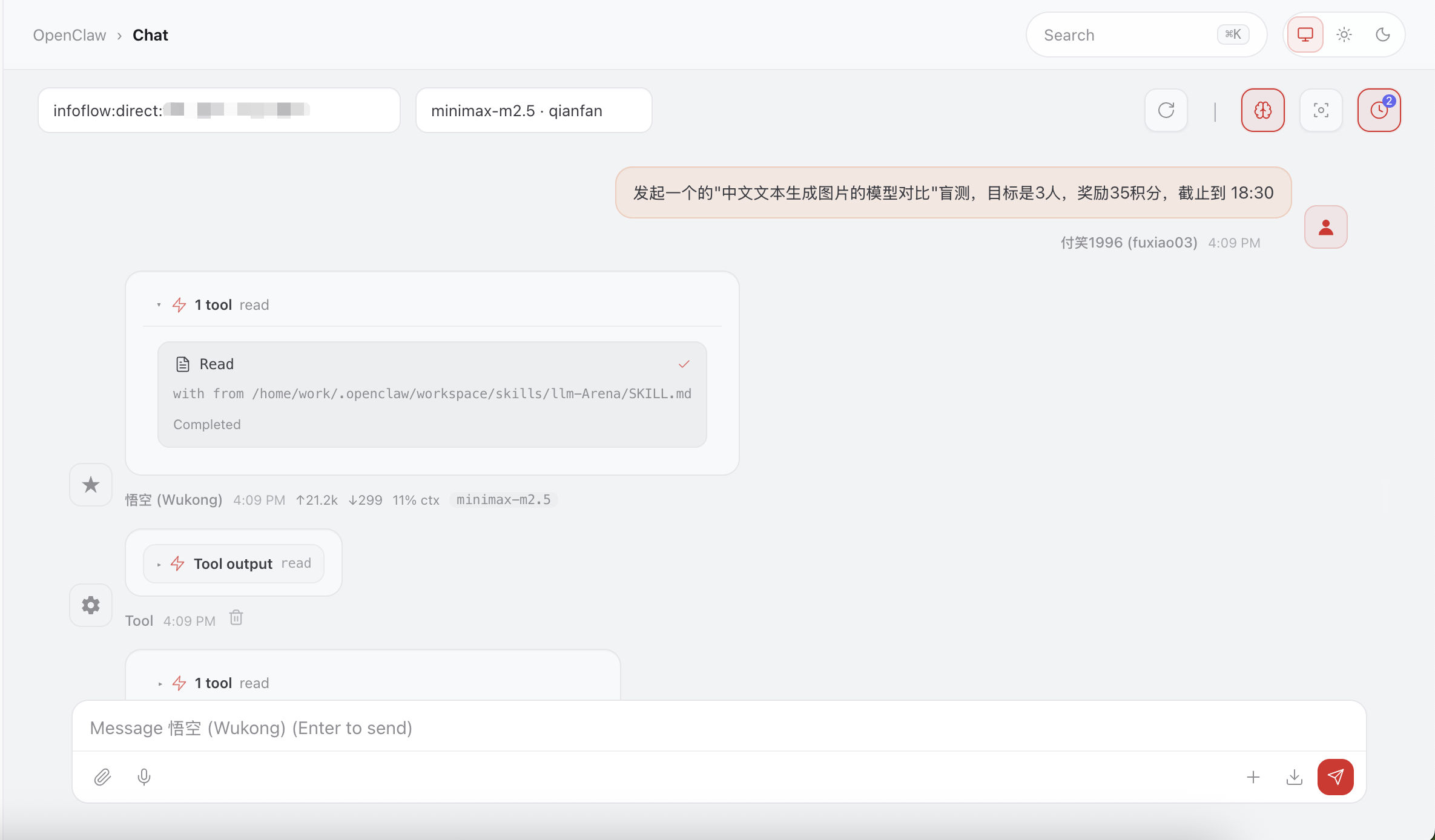 2. **判断用户参加的任务id** - 根据上下文对话信息,` 中的以及 `./skills/llm-Arena/eval_tasks.json任务记录,判断用户参加的是哪个任务,用于更新对应任务的记录。